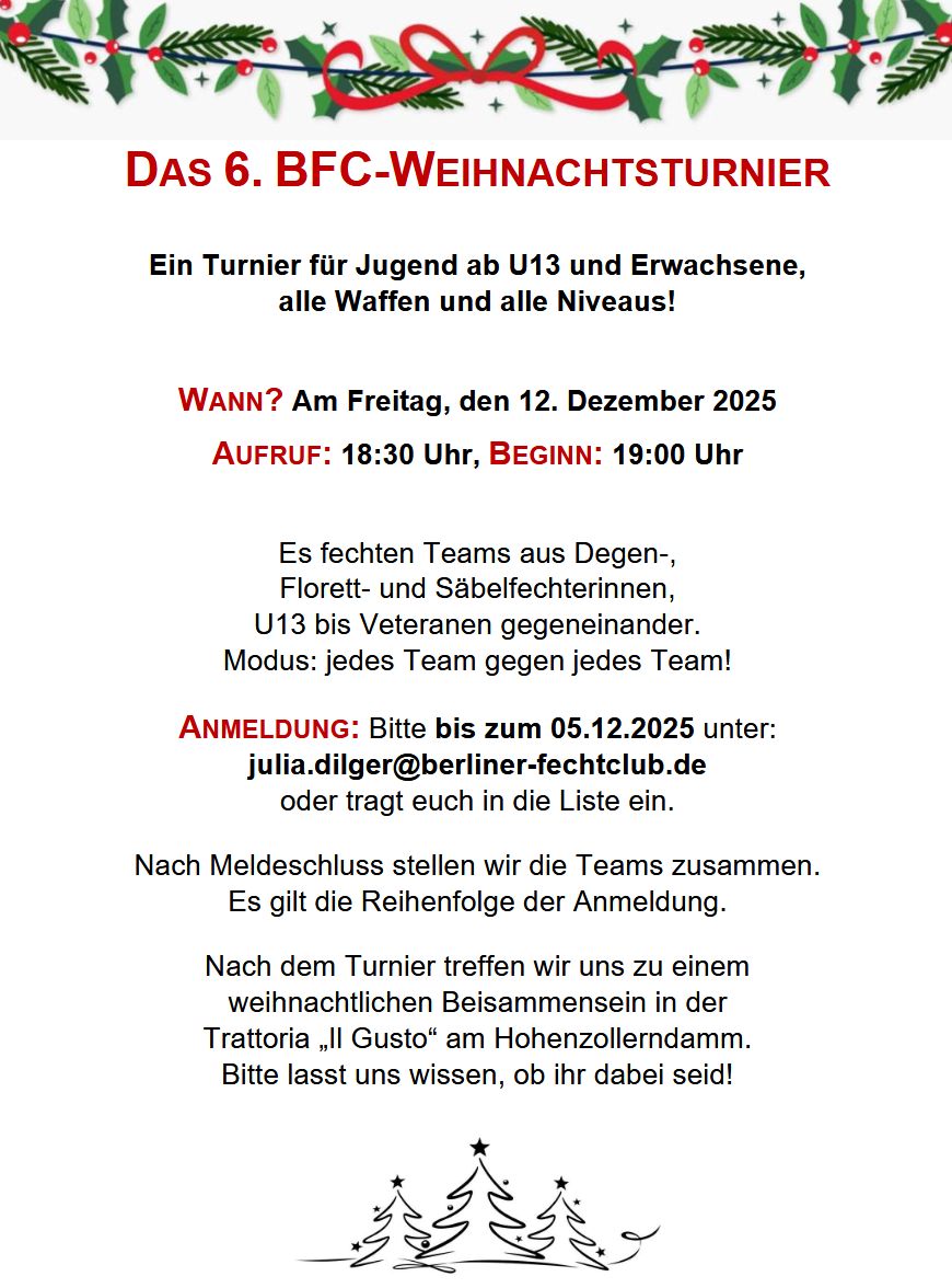 Einladung zum 6. BFC-Weihnachtsturnier!